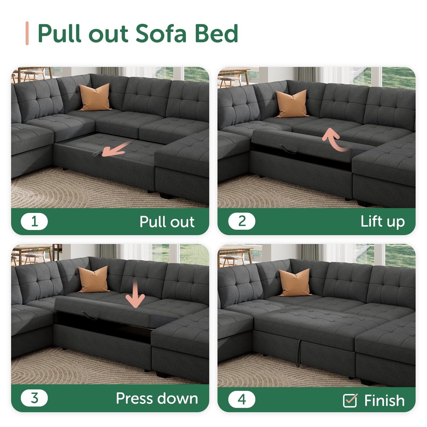Perfect for dynamic living spaces, this modular sectional can be rearranged to fit any layout. Each piece is lightweight yet sturdy, allowing for endless combinations while maintaining structural integrity. Cushions are designed for maximum comfort, making it a practical and stylish addition to your home.